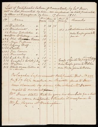 Title: Fragment of a list of certificates taken from a census book by John Drew