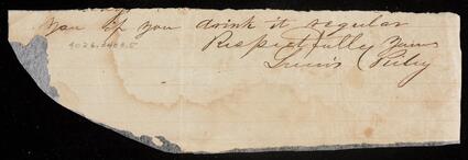 Submit a question or comment to the Gilcrease Museum staff about this selected item: First name * Last name * Email Address * Direct your question or comment to * - Select -Art DepartmentAnthropology DepartmentArchive DepartmentLibrary Department Questions or Comments Submit Current Selection Title: Fragment of letter Creator: Accession Number: 4026.3403.5