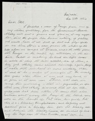 Title: Letter with envelope from Leigh to Ethel regarding finishing a view of Kenya painting and stretching canvases