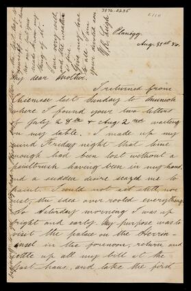 Title: Letter and envelope from Leigh to his mother about painting in Planegg and discussing his dreams, which include studying in Paris