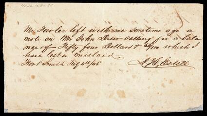 Title: Note for $54.60 to A. H. Estelle with corresponding receipt from W. W. Fowler