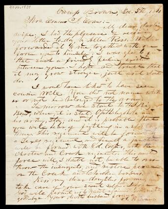Title: Letter from J. P. Evans to his wife concerning upcoming battle on Big Bend