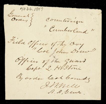Title: General Orders from J. W. Wells with countersign Cumberland