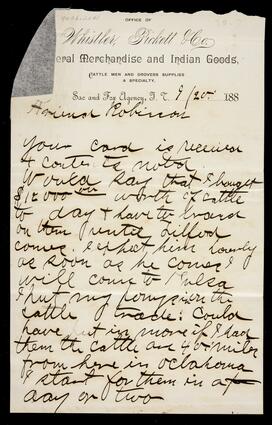 Title: Letter from A. C. Brown addressed to Friend Robinson concerning cattle
