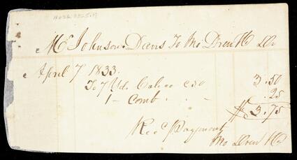 Title: Receipted account statement to Mr. Johnson Davis for the total of $3.75