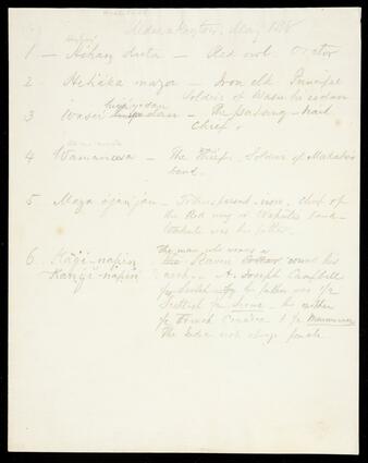 Title: Unidentified list of Indians including name and description