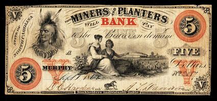 Title: A bank note for $5.00 from the Miners and Planters Bank of Murphy, North Carolina