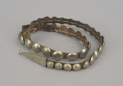 Title: Leather belt with silver conchos