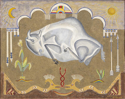 Submit a question or comment to the Gilcrease Museum staff about this selected item: First name * Last name * Email Address * Direct your question or comment to * - Select -Art DepartmentAnthropology DepartmentArchive DepartmentLibrary Department Questions or Comments Submit Current Selection Title: Corn Legend Creator: Jimalee Chitwood Burton Accession Number: 02.1746
