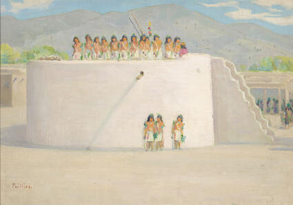 Submit a question or comment to the Gilcrease Museum staff about this selected item: First name * Last name * Email Address * Direct your question or comment to * - Select -Art DepartmentAnthropology DepartmentArchive DepartmentLibrary Department Questions or Comments Submit Current Selection Title: Corn Dance Creator: Bert Geer Phillips Accession Number: 01.562
