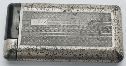Title: Silver cigarette case with embossed designs on front and back