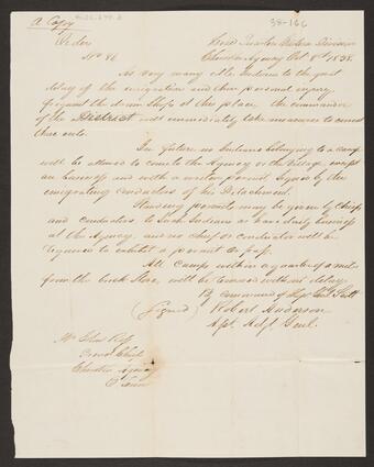Title: A Copy of Orders No. 84 of Captain Robert Anderson by General Winfield Scott