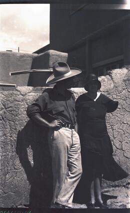Title: Couple Standing by Adobe Wall