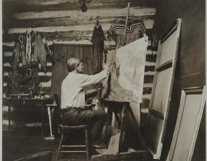 Title: Charles M. Russell Working on Painting in Studio