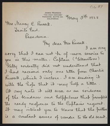 Title: Letter from James Pearson to Nancy C. Russell