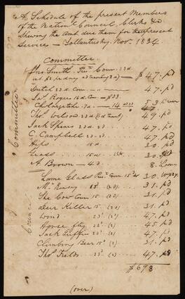 Title: List of Amounts Due to Members of the National Committee, National Council, Chiefs, and Clerks