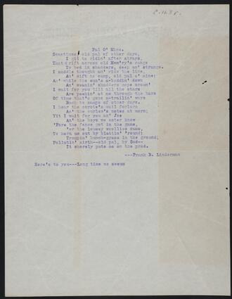 Submit a question or comment to the Gilcrease Museum staff about this selected item: First name * Last name * Email Address * Direct your question or comment to * - Select -Art DepartmentAnthropology DepartmentArchive DepartmentLibrary Department Questions or Comments Submit Current Selection Title: Poem Creator: Accession Number: TU2009.39.4845