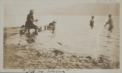 Title: Four People in Lake McDonald, Montana