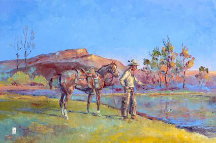 Submit a question or comment to the Gilcrease Museum staff about this selected item: First name * Last name * Email Address * Direct your question or comment to * - Select -Art DepartmentAnthropology DepartmentArchive DepartmentLibrary Department Questions or Comments Submit Current Selection Title: Gift to the Water People Creator: Ace Powell Accession Number: 01.1941