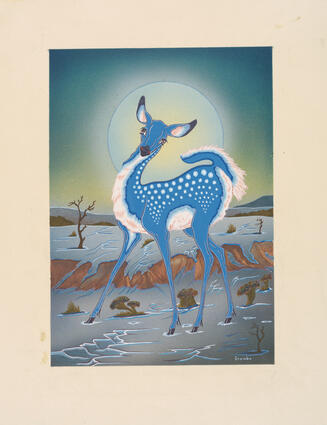 Submit a question or comment to the Gilcrease Museum staff about this selected item: First name * Last name * Email Address * Direct your question or comment to * - Select -Art DepartmentAnthropology DepartmentArchive DepartmentLibrary Department Questions or Comments Submit Current Selection Title: One Blue Deer Creator: Woodrow Wilson Crumbo Accession Number: 02.315