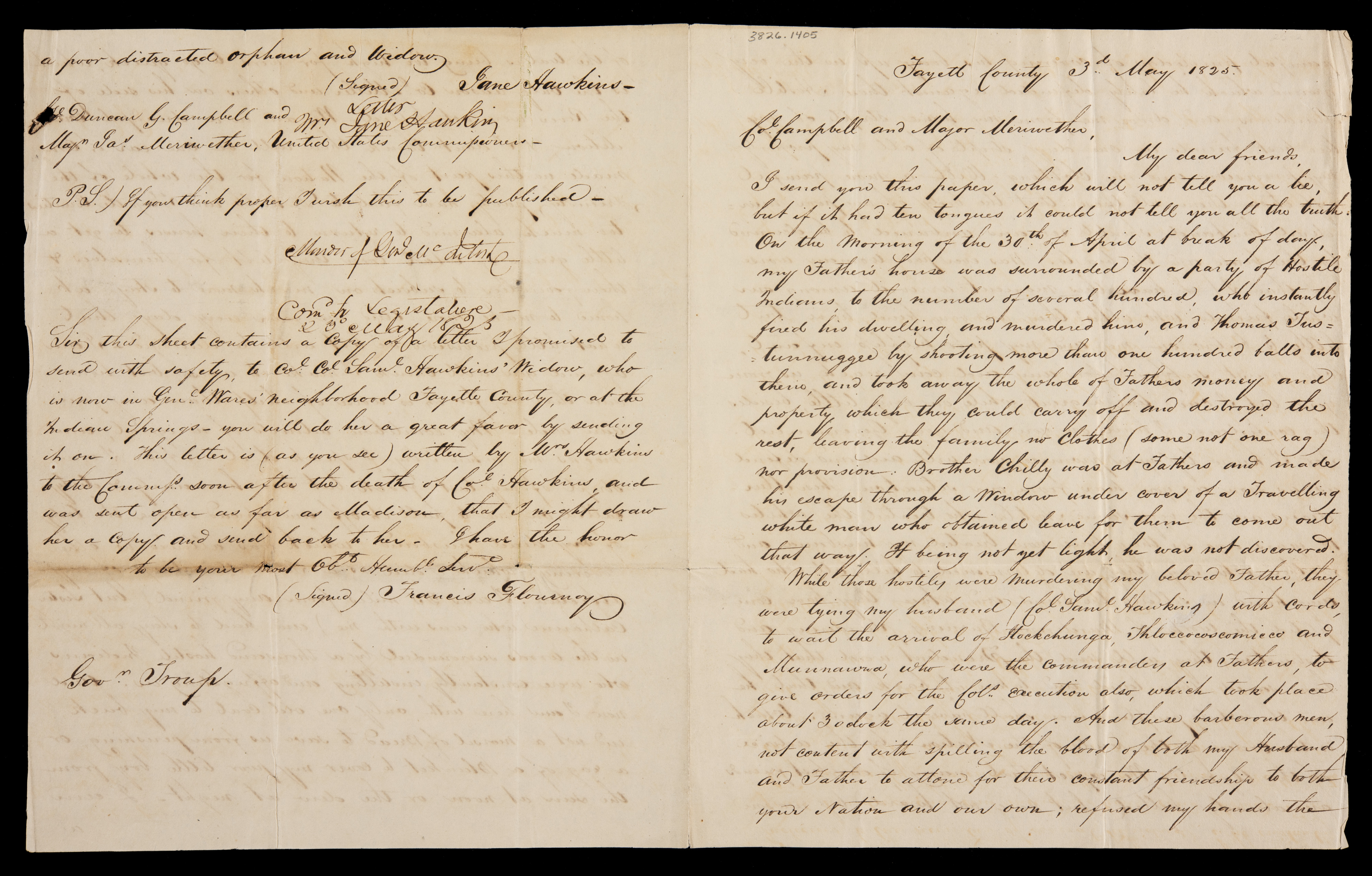 UMO ID: 258103152Parent Museum Object: Letter to Colonel Campbell and Major Meriwether from Jane HawkinsDisplay Order: 0Primary: No