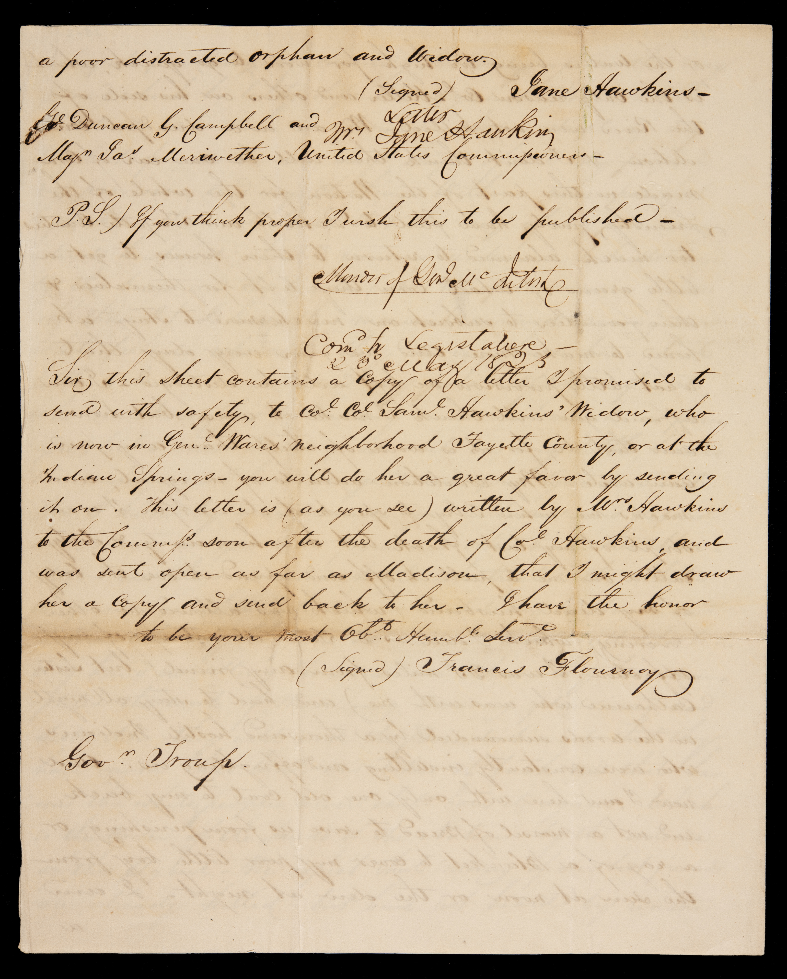 UMO ID: 258103532Parent Museum Object: Letter to Colonel Campbell and Major Meriwether from Jane HawkinsDisplay Order: 0Primary: No