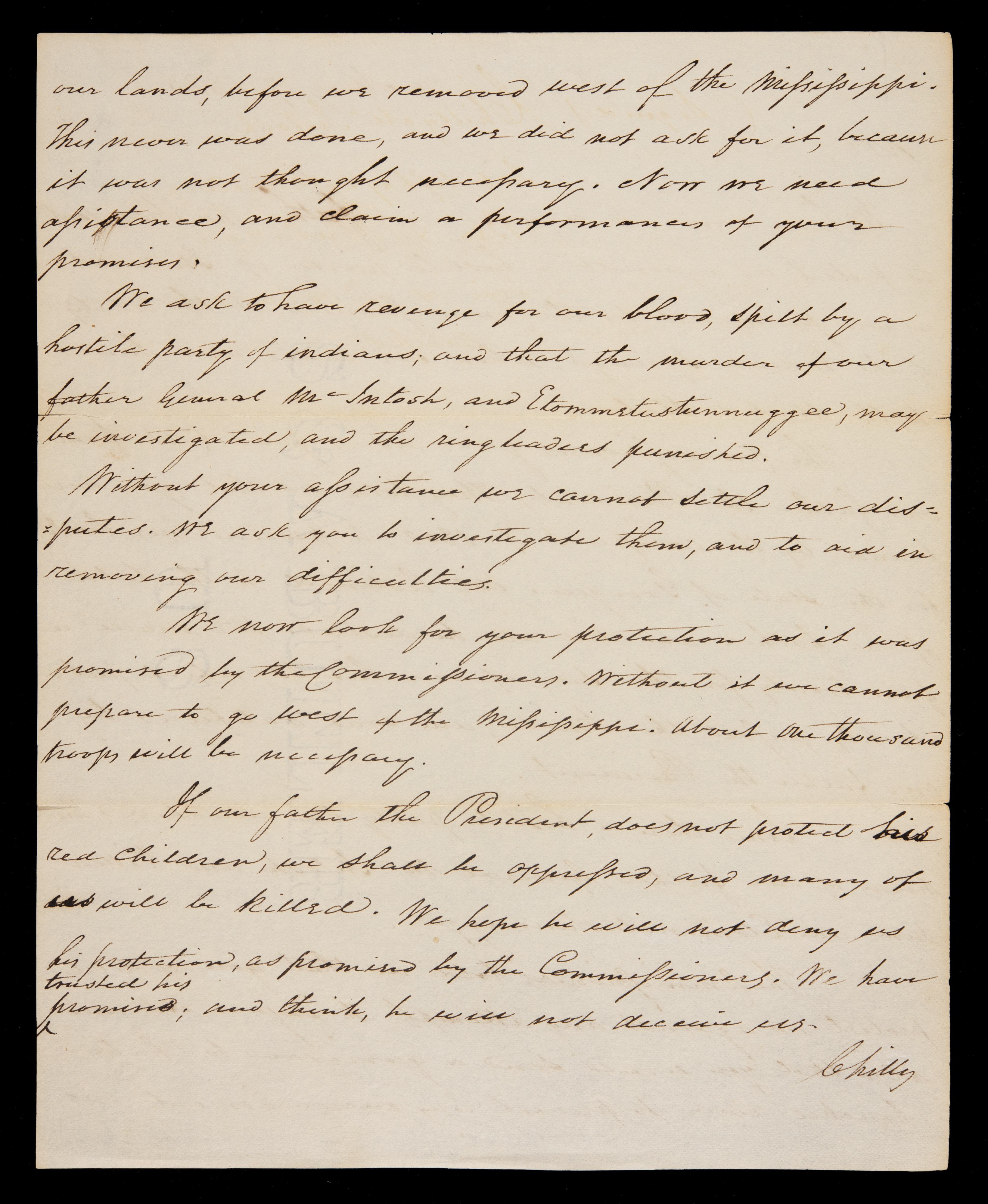 UMO ID: 258104362Parent Museum Object: Letter to the Secretary of War from Chilly McIntoshDisplay Order: 0Primary: No