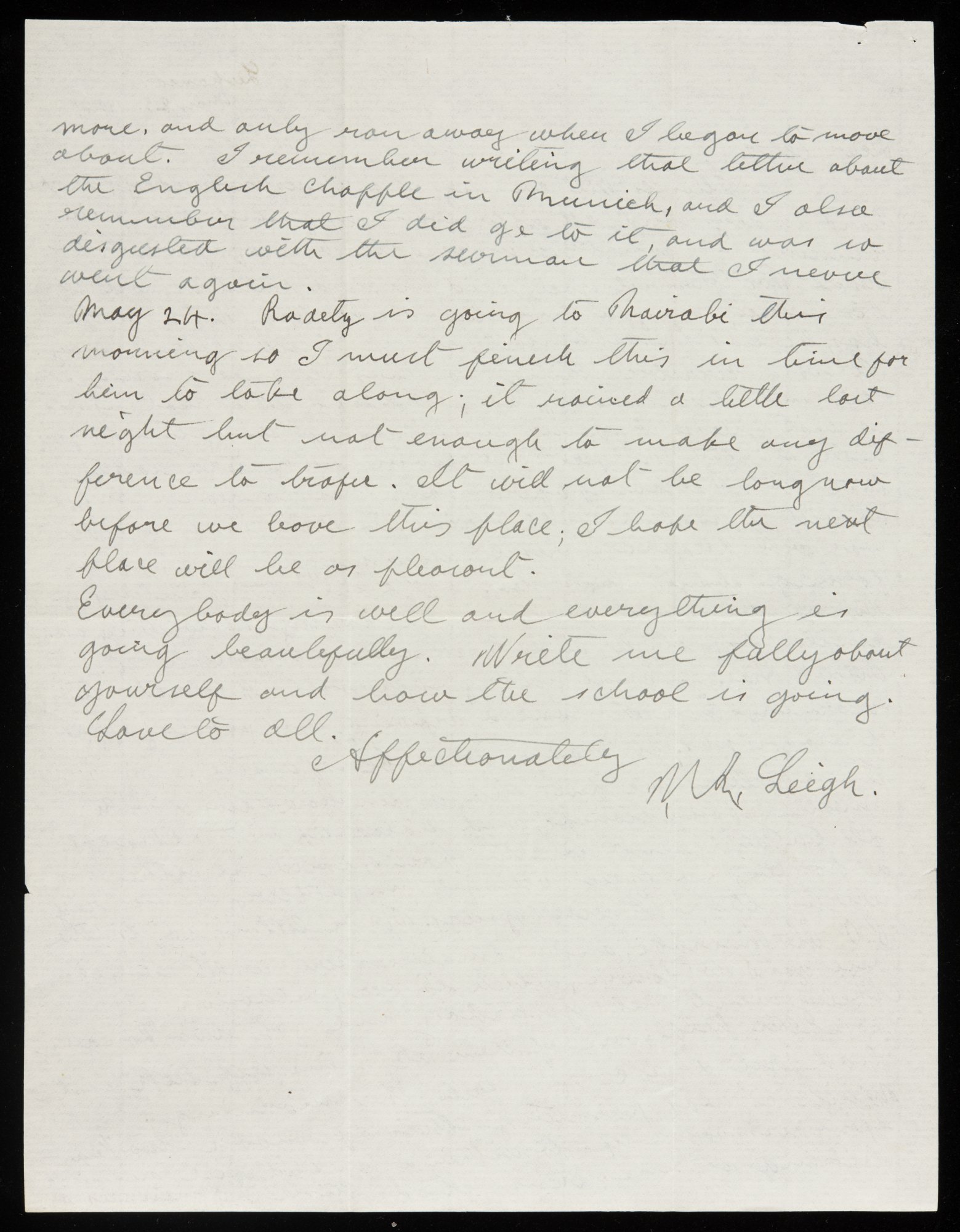 UMO ID: 115556572Parent Museum Object: Letter with envelope from Leigh in Lukenia to Ethel Traphagan Leigh containing references to friends, camp news, and to two klepsprengers watching him paintDisplay Order: 0Primary: No