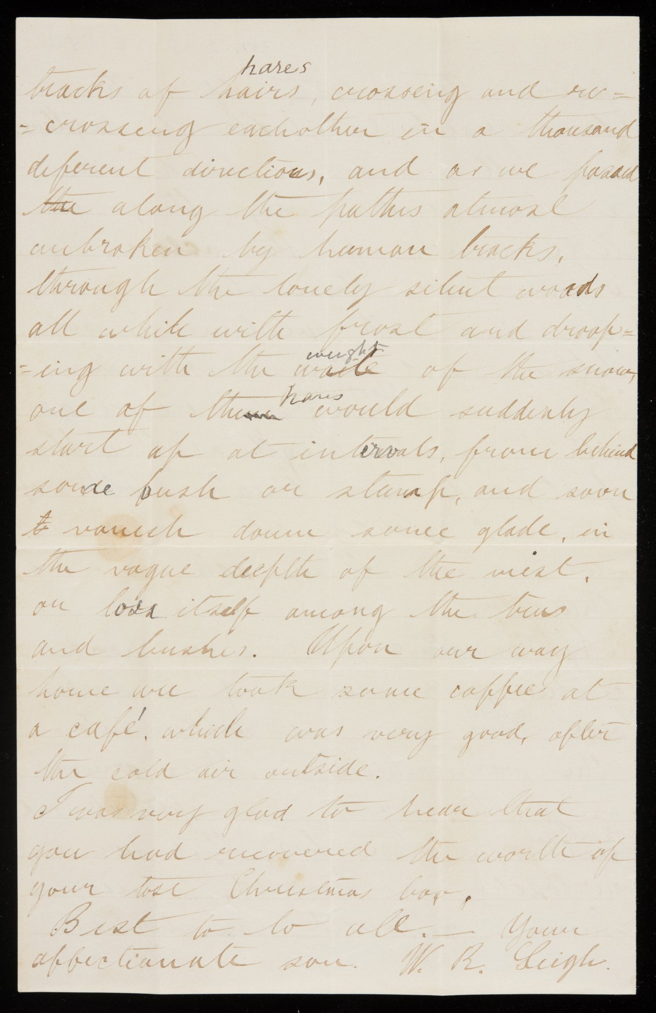 UMO ID: 114041333Parent Museum Object: Letter with envelope from Leigh to Mother describing a walk to Royal Park, watching the ice skaters, pretty girls and the beauty of the snowy woodsDisplay Order: 8Primary: No
