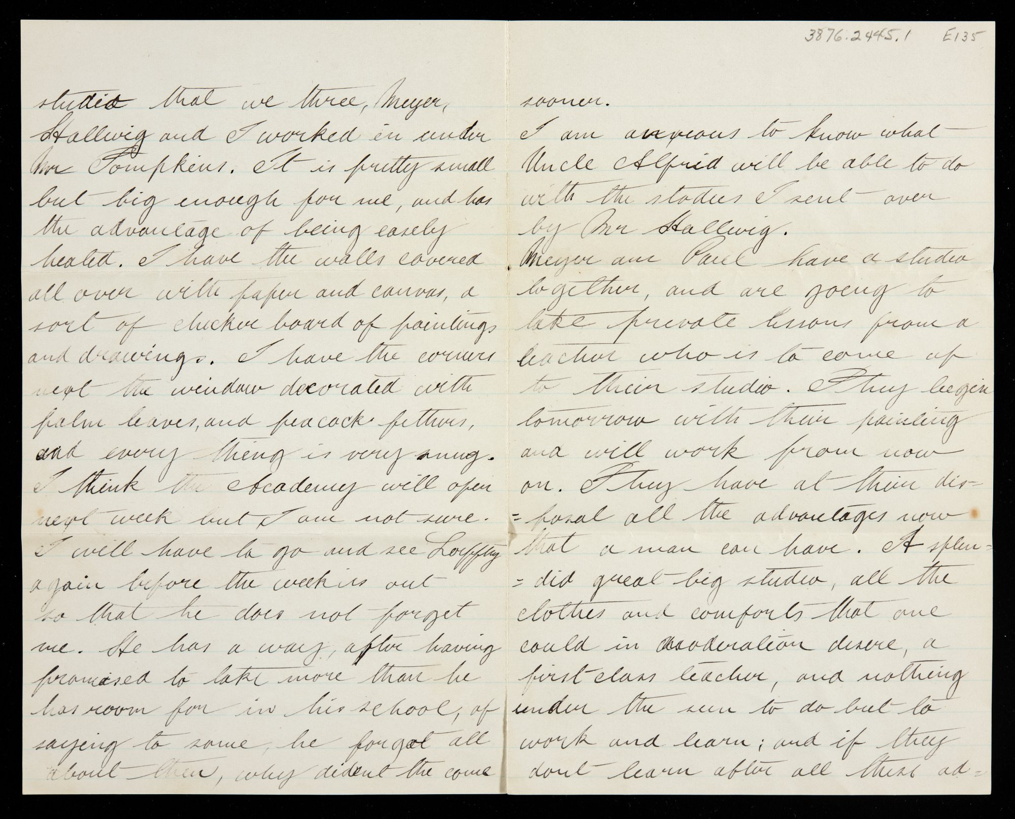 UMO ID: 114102083Parent Museum Object: Letter with envelope from Leigh to his mother regarding setting in, plans, studies shipped to Uncle for saleDisplay Order: 2Primary: No
