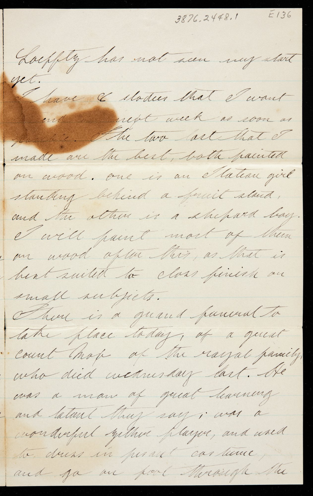 UMO ID: 114103556Parent Museum Object: Letter from Leigh to his mother regarding six studies that are to be shipped next week, the weather, practicing the zitherDisplay Order: 5Primary: No