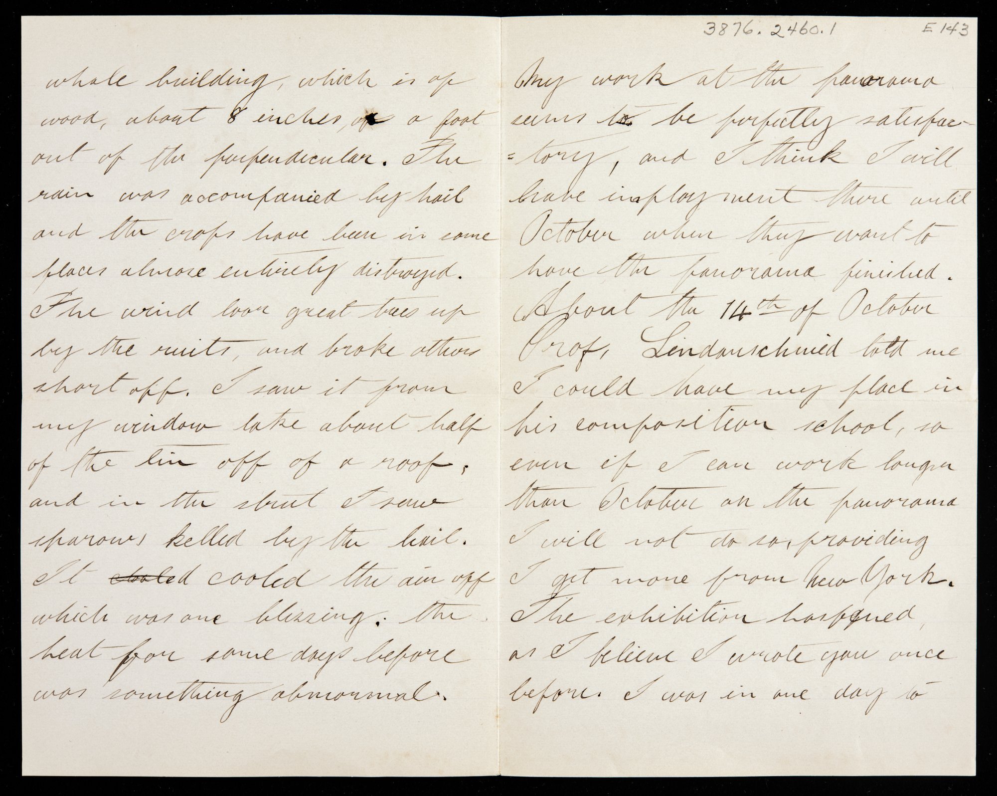 UMO ID: 114109413Parent Museum Object: Letter from Leigh to his mother regarding his work on a panorama of the Battle of Waterloo high up near the ceiling on clouds and skyDisplay Order: 2Primary: No