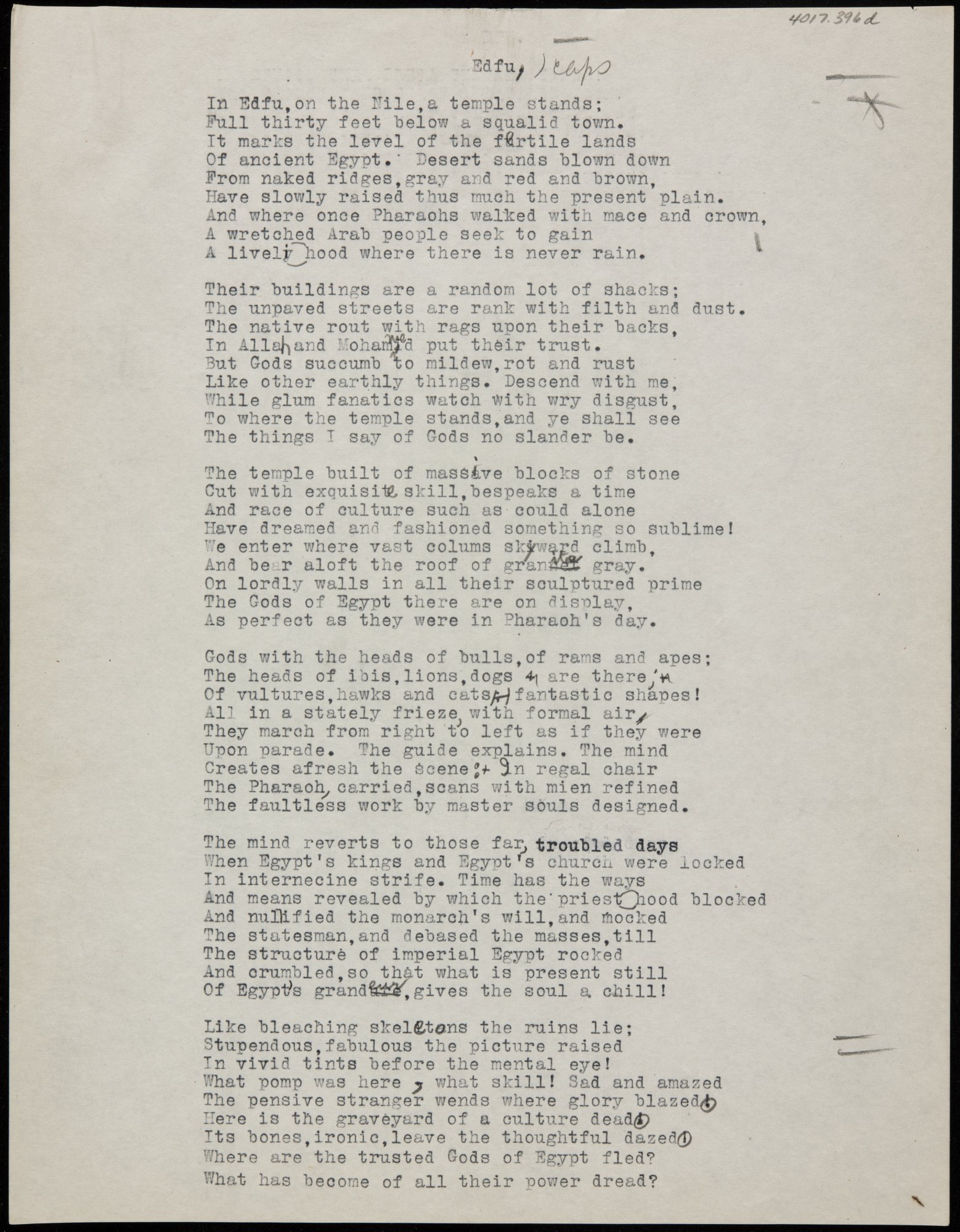 Drafts of "EDFU" with note