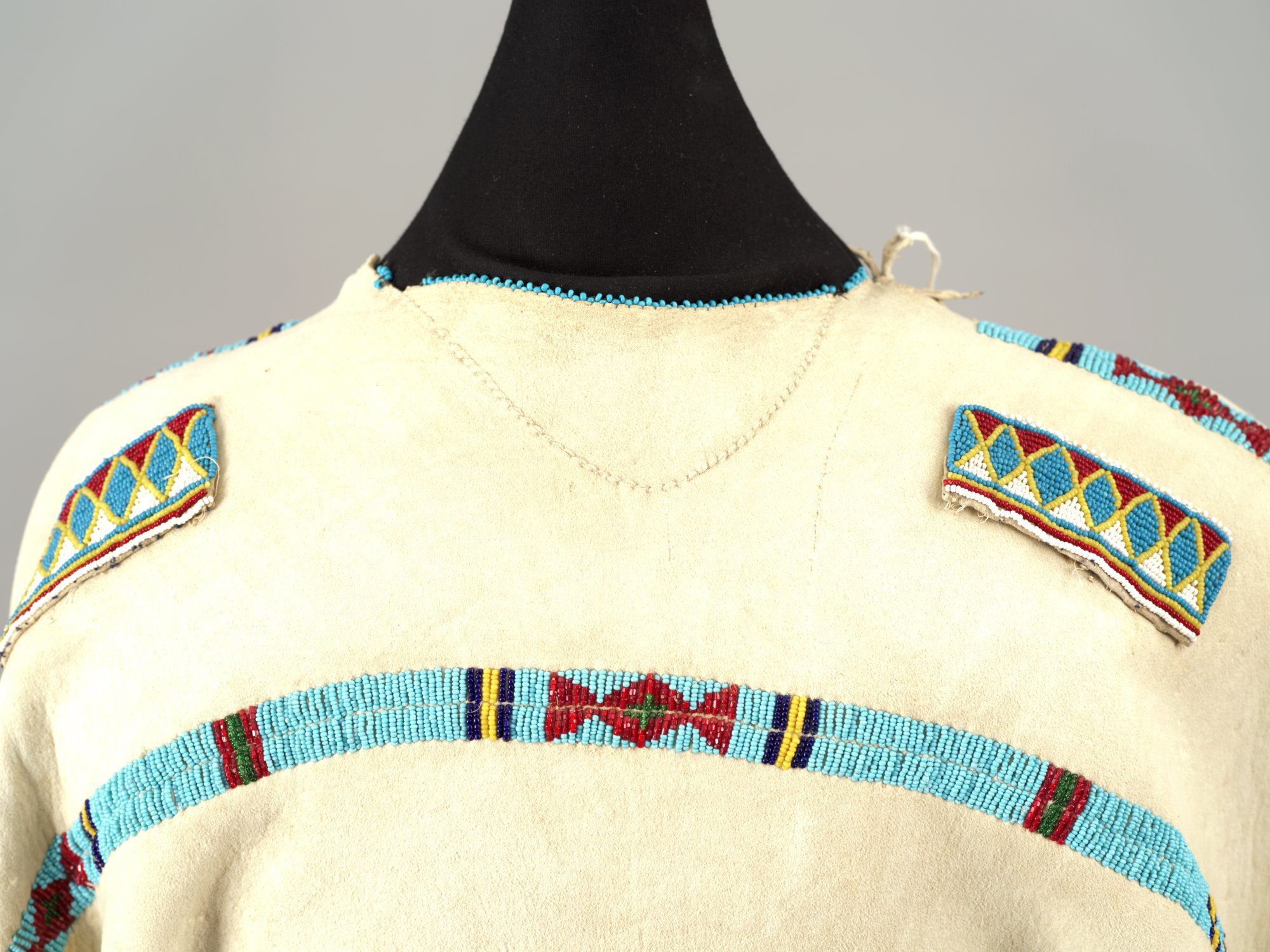 UMO ID: 119985599Parent Museum Object: White doeskin woman's dress with fringe at the hem and sleeve.Update Stamp: 42445394Exif Model: Hasselblad X1D-50cExif Make: HasselbladExif Length: 6200Exif Width: 8272Category: QA-Primary ImagesDisplay Order: 16Web: YesPrimary: No