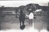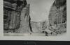 Photograph of cliffs near Canyon de Chelly and small figures near bottom center of image |