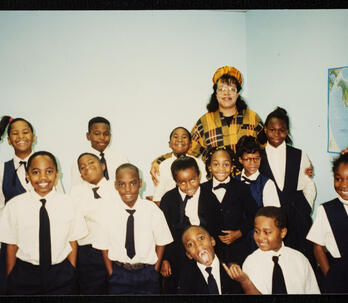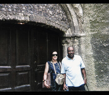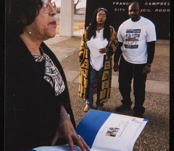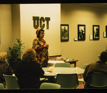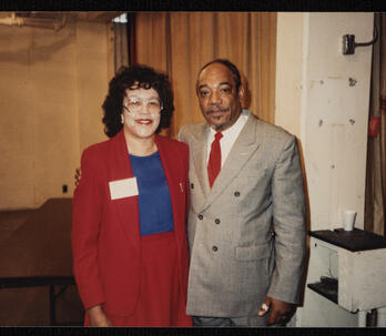 Eddie Faye Gates, the education award recipient, with Dr. William McLain, of Washington, District of Columbia and Alabama born, at the 1991 Tulsa Metropolitan Ministries Racism Conference, held at the downtown Doubletree Hotel in Tulsa, Oklahoma
