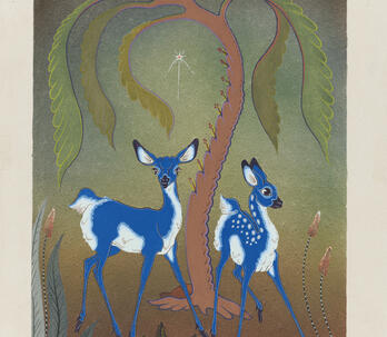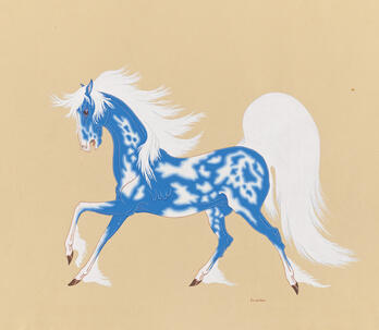 Woodrow "Woody" Wilson Crumbo was Potawatomi, French and German by birth. After losing his parents at a young age, he lived among the Creeks and was heavily influenced by that culture. Crumbo's father was German-American. His mother was French-Potawatomi. Source: Carole Klein, Art Curator, October 16, 2015