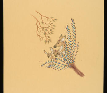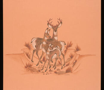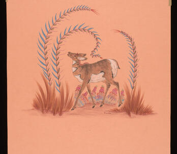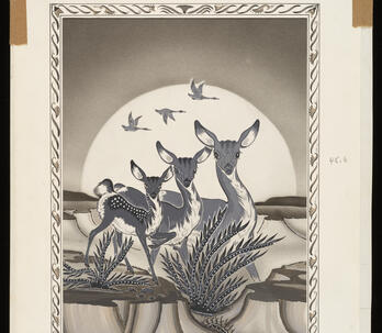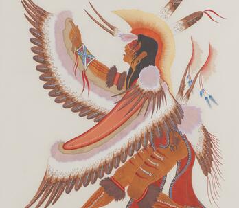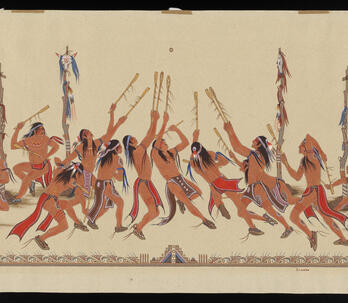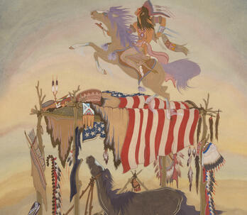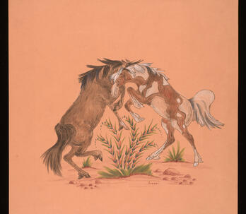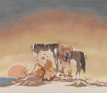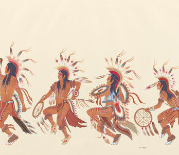 Woodrow "Woody" Wilson Crumbo was Potawatomi, French and German by birth. After losing his parents at a young age, he lived among the Creeks and was heavily influenced by that culture. Crumbo's father was German-American. His mother was French-Potawatomi. Source: Carole Klein, Art Curator, October 16, 2015