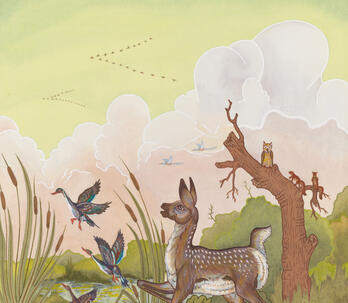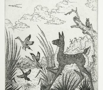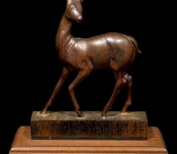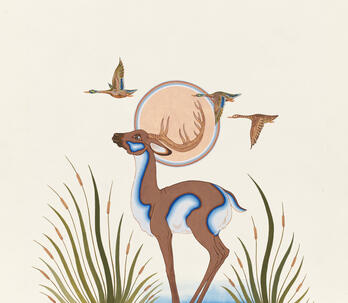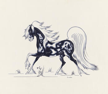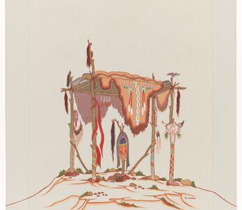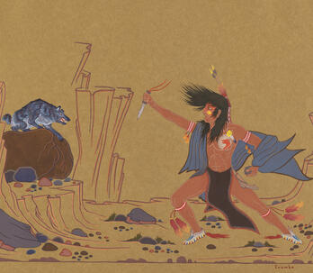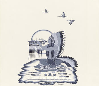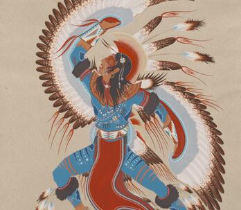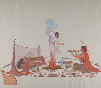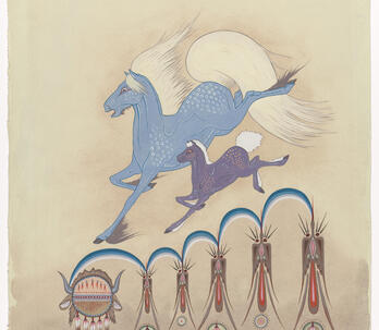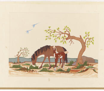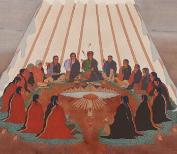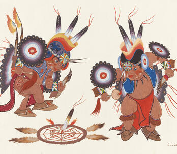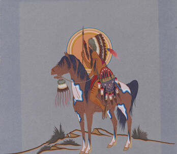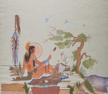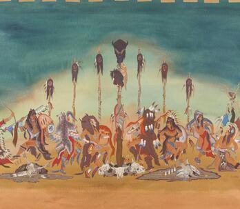 Woodrow "Woody" Wilson Crumbo was Potawatomi, French and German by birth. After losing his parents at a young age, he lived among the Creeks and was heavily influenced by that culture. Crumbo's father was German-American. His mother was French-Potawatomi. Source: Carole Klein, Art Curator, October 16, 2015