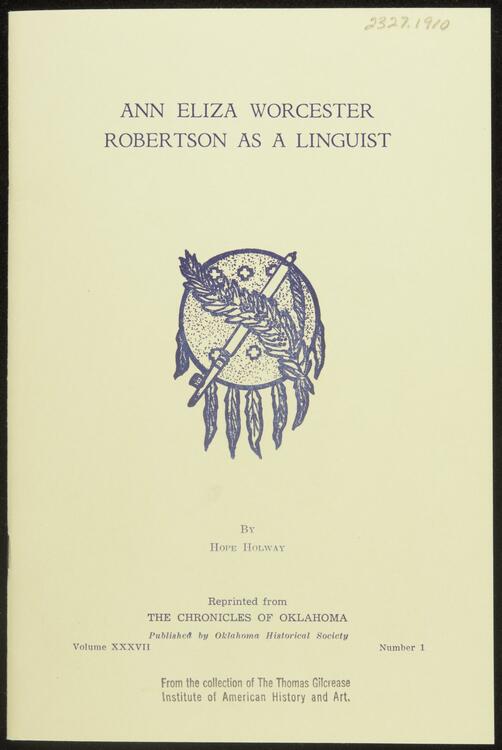 Article "Ann Eliza Worcester Robertson as a Linguist" from the Chronicles of Oklahoma, Vol XXXVII, #1