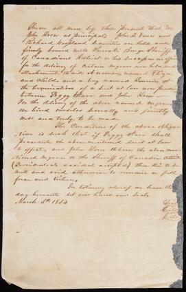 Title: Fragment of an unsigned declaration by John Drew, John T. Vann and Richard Crossland