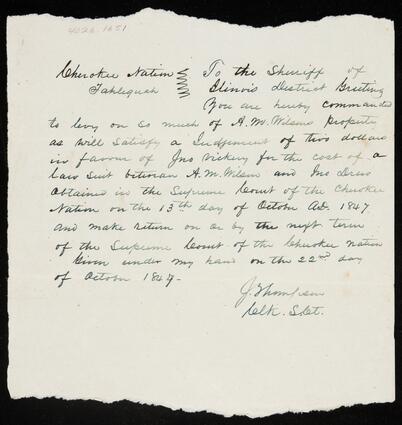 Title: Order to sheriff to levy on property of A. M. Wilson to pay $2.00 judgment