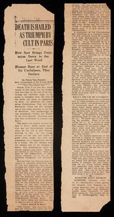 Title: Newspaper clipping "Death is Hailed as Triumph by Cult in Paris"
