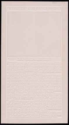 Title: Pink etched original cardboard of article "Westerns' for Ranch Houses"