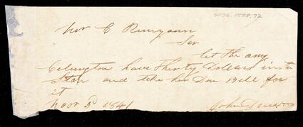 Title: Note from John Drew authorizing payment of thirty dollars and to take Bell for it