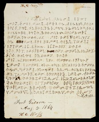 Title: Letter written in Cherokee from Henry C. Ross at Fort Gibson, Cherokee Nation