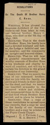 Title: Newspaper clipping reporting death of Henry C. Ross on May 4, 1906