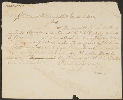Title: Note Requesting William Williams and James Starr to Meet with Acting U. S. Agent