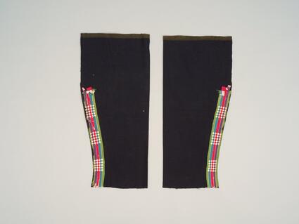 Title: Pair of wool leggings with silk ribbonwork on lateral edges
