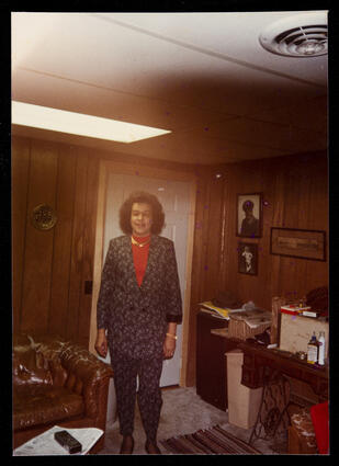 Title: Eddie Faye Gates leaving her house for a dinner party with Representative Don Ross and Senator Maxine Horner